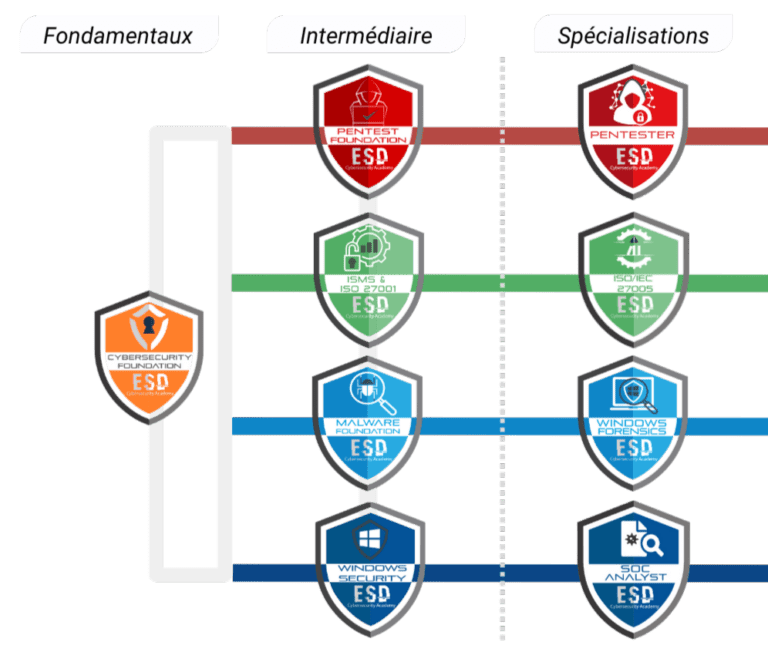 À l’ESD Cybersecurity Academy, nous vous offrons la possibilité de suivre un parcours de certification unique.